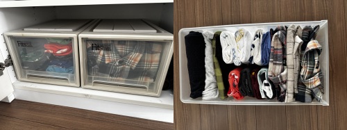 アパレルボックスはレギュラーボックスよりも少し容量は小さいですが、衣類を入れやすい形です。
